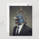 Funny Bird in a Business Suit With a Cage Head Postcard