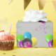 Funny Birthday Balloon Face on Gray Wrapping Paper