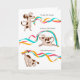 This is a fun birthday card featuring a spectacularly talented (illustrated) dog, using the medium of dance to wish the recipient a super wonderful birthday. Set against a white background, our talented mutt not only performs three majestic moves, but highlights the manoeuvres with a flick of the paw, swishing his accompanying blue, orange and pink ribbons with aplomb. If you're looking for a birthday card with grace, style and, of course, humor, this could be it! WOOF!