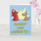 A funny cartoon birthday card with a cartoon image of a dog and fire hydrant with the fire hydrant looking a little worried about what is about to happen as the dog eyes it favorably from a far.