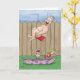 Funny cartoon birthday card depicting an overzealous adult on a hot summers day doing a cannon ball into the kiddy pool.