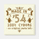 This funny birthday novelty gag gift square magnet says, "Made in ___ / 100% Cyborg / no original parts left." The unique over-the-hill design is done in all brown with a combination of retro / vintage flourishes, a banner and two little robots. Easily change the year to the year the recipient was born. This is the perfect humorous birthday gift for a geek or nerd who likes robots.