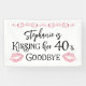 Funny Birthday Kiss a Decade Goodbye Custom Banner. Celebrate a birthday beginning a new decade with this banner featuring an editable age modern typography design for the funny saying NAME IS KISSING HER DECADE GOODBYE (the sample shows 40s for a 50th birthday) and personalized with your custom text. CHANGES: The personalized text font style, color, size and placement as well as the graphics and background colors can be changed to coordinate with your party theme colors (shown in pink and black). OPTIONS: The sample is shown in a 3x5' size on indoor vinyl--other sizes and outdoor vinyl is available on the ordering page or the design can be transferred to a poster, foam board, tapestry or other product or converted by the designer to a Digital Download file for local printing. ASSISTANCE: For help with design modification or personalization, color change, resizing or transferring the design to another product or converting to a Download file, contact the designer BEFORE ORDERING via the Zazzle Chat MESSAGE tab below or email makeitaboutyoustore@gmail.com.