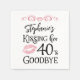 Funny Birthday Kissing A Decade Goodbye Custom Party Paper Napkins. Celebrate a birthday beginning a new decade with these funny party napkins featuring an editable age modern typography design for the saying NAME'S KISSING HER "DECADE" GOODBYE (the sample shows 40s for a 50th birthday). CHANGES: The personalized text font style, color, size and placement as well as the graphics and background colors can be changed to coordinate with your party theme colors (shown in pink and black). NAPKIN OPTIONS: The sample is shown in the 4.75x4.75-inch Cocktail size on white--other sizes and napkin paper colors are available on the ordering page. ASSISTANCE: For help with design modification or personalization, color change, resizing, transferring the design to another product or you would like coordinating items, contact the designer BEFORE ORDERING via Zazzle Chat or makeitaboutyoustore@gmail.com.