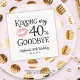 Funny Birthday Kissing My Decade Goodbye Custom Party Paper Napkins. Celebrate a birthday beginning a new decade with these funny party napkins featuring an editable modern typography design for the saying KISSING MY DECADE GOODBYE (the sample shows 40's for a 50th birthday) and personalized with your custom text like name, event and/or date. CHANGES: The personalized text font style, color, size and placement as well as the graphics and background colors can be changed to coordinate with your party theme colors. NAPKIN OPTIONS: The sample is shown in the 4.75x4.75-inch Cocktail size on white--other sizes and napkin paper colors are available on the ordering page. ASSISTANCE: For help with design modification or personalization, color change, resizing, transferring the design to another product or you would like coordinating items, contact the designer BEFORE ORDERING via Zazzle Chat or makeitaboutyoustore@gmail.com.