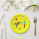 Creative birthday plates cartoon featuring a game of "Pin the Tail on the Donkey" art. Add text to personalize.