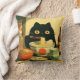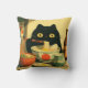 Funny Black Cat Eating Ramen Throw Pillow