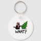 Funny Black Cat Gift Pushing Christmas Tree Over C Keychain