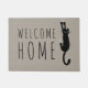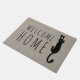 This cute kitty lover's doormat can be personalized with your family name or slogan. Black cat hanging on with claws. Makes a fun novelty gift for new home owners, newlyweds and anyone who loves a crazy black cat. Visit Jenn's Doodle World for even more pet lover doormats and funny cats home decor.