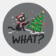 Funny Black Cat Pushing Christmas Tree Cat What? Classic Round Sticker