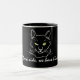 Drawing of a funny cat's face. The eye half closed in a wink. The cat grins and winks at you. Funny prints and gifts for anyone. Coffee mug. Change or delete the text Join the Dark side, we have black coffee.... For dark or black products.