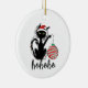 Funny Black Christmas Light Cat HoHoHo Ceramic Ornament