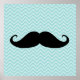 Funny Black Mustache And Blue Chevron Pattern Poster