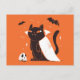 Funny Black Vampire Cat for Halloween Postcard