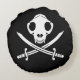 Funny Black White Jolly Kitty Pirate Skull Bones Round Pillow