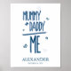 Funny Blue Baby Addition Poster design for baby nursery, personalized with your name and date of birth.