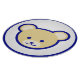 A cute teddy bear not only for children but also adults. It looks great on apparel or ornaments. Minimalist vector graphic style. This is a very clean cartoon style head of a teddy bear. In beige and light brown on blue.