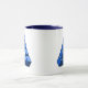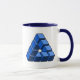 Drink your give coffee from this classic combo mug with this cool impossible triangle construction. The colors are blues and black.