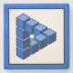 The famous impossible construction triangle in the form of cubes. An impossible triangle in the form of blue blocks. Also known as impossible transformation or impossible construction. You'll find may on the internet, but I think mine is very well executed.