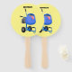 Funny blue cement mixer cartoon illustration hand fan