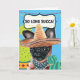 A fun and eye-catching design of a hilarious Brussels Griffin dog wearing a Mexican sombrero hat and sporting a plaid blue and white scarf is set against a background filled with a large prickly cactus and a speech bubble with the words, so long succa! The inside reads, May your travels lead you to what your heart seeks. Bon Voyage! Change the wording and the background color to suit your requirements.
