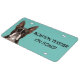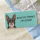 Funny car license tag with a Boston Terrier breed dog closeup with his ears up and humorous saying with background color and text that can be customized if you want.