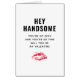 Send a kiss and show him your love with this Funny Boyfriend Valentines Day Poem Red Kiss Big card. It is designed with a funny poem on the front "hey handsome you're so sexy and you're so fine will you be my valentine" in black typography and a big red kiss. The inside of card has a customizable greeting, "Happy Valentine's Day" followed by your signature name in trendy hand lettered script.