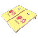 Natural Wood Cornhole Set, Yellow and Purple bags