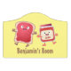 Funny bread and jam cartoon characters door sign