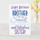 A funny happy birthday card for your brother! Send it to "someone who is smart, talented and fabulous" - because you are so alike! Make someone smile with this humorous stylish card. Blue and purple typography design. Personalize name and message.