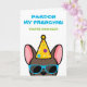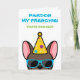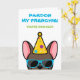 If you know someone who loves french bulldogs and has a good sense of humor, this funny frenchie birthday card is ideal for sending to them on their special day. The design features a cartoon-style illustration of a brown colored french bulldog wearing a party hat and sunglasses with the wording "Pardon my frenchie! You're how old?" written on the front. This design is also available with different colored french bulldogs.