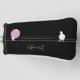 Quirky pigeon golf head cover featuring two funny birds on a wire stuck with wads of chewed bubblegum. One bird blowing a big pink bubble, another bird stepping in gum. Use the easy text template to add a name, monogram, initials, or short funny golf quote. Edit to change the black background to any color you wish. ♡ Idyllfire