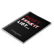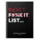 Funny bucket list notebook featuring a modern black background that can be changed to any color, the humorous saying "f#%k it list..., with the first word crossed out and replaced with bucket", your names, and the year established.