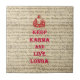 Funny humorous take on the popular "keep calm" slogan with a Buddhist theme. "Keep Karma and Live Longa" red text on an antique vintage Buddha book illustration on a vintage paper background.