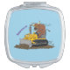 Funny bull driving bulldozer cartoon compact mirror