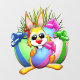 Funny and Cute Easter Bunny Cartoon Character biting a decorated Egg. Original Digital Art Copyright BluedarkArt.