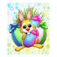 Funny and Cute Easter Bunny Cartoon Character biting a decorated Egg. Original Digital Art Copyright BluedarkArt.