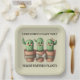 Let one and all know that you have a weakness for (even the prickliest) green growing things with these whimsical paper plates, which feature AI-generated artwork of cute potted baby cactuses rendered in soft pastel tones. Customize top and bottom messages as desired. A great gift idea for gardeners and horticulturists!