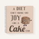 'A Diet can't bring you Joy like a Cake can' A funny diet verses cake truism and a witty foodie saying with a quirky chocolate cake cake waving illustration. This funny anti dieting slogan is the ideal quirky gift for cake lovers and those that live to bake. Funny cake art and slogan designed by artist Catherine Sweetman