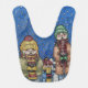 The original funny Christmas illustration on this christmas baby bib has three cute carol singers enthusiastically singing a festive tune in the December snow. The snow is falling all around them, but they’re warmly wrapped in their red and yellow and red and green knitted stripy hats and scarves to keep the chill of winter out. This original humorous Christmas picture of the three little carol singers looks very seasonal on this christmas bib, the colours are nice and bright to make any baby smile during the holiday season. The original christmas carol singer image is painted in water-clour, but this image has been digitally enhanced to give it a cartooned effect. I think this funny little image will make a lovely bib for the festive season.