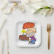 Funny Cartoon Boy with Chocolate Birthday Cake Paper Plates