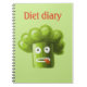 Funny broccoli diet diary with a bright colored illustration a big eyed cartoon broccoli in distress, waiting to be eaten and customizable text. This funny diet notebook will appeal to a vegetarian, vegan and everyone who loves broccoli. This crazy broccoli illustration is part of my series with three funny vegetables.