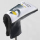 A funny cover for golfers featuring a cartoon buzzard holding a can of his favorite beverage, shown with the text Old Buzzard's Favorite Putter. Customized the text to suit the recipient, this makes a great gift.