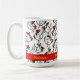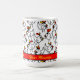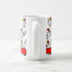 This personalized coffee mug is the perfect gift for someone who likes chickens! It features a pattern of comically drawn cartoon chickens in red, yellow, orange, and black on a white background. The editable text allows you to customize it with names or any message you wish.