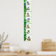 Colorful and funny cartoon dinosaurs climb up this growth chart next to a lush jungle vine, completed with your child's name at the time for a personalized touch.