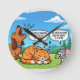 Funny Cartoon Dog, Cat, and Mouse Round Clock