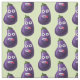 Funny eggplant fabric design with a pattern of a big eyed cartoon eggplants on customizable light green background. This funny eggplant design will appeal to a cook, vegetarian, vegan and people who love eggplants and vegetables.