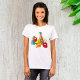 Add a splash of personality to your casual wardrobe with this womens t-shirt featuring a playful collection of smiling food characters. This soft and comfortable tee showcases a vibrant graphic of a happy fish, a sweet apple, a grinning banana, and a friendly group of vegetables like a carrot and potato. The whimsical hand-drawn illustration adds a touch of humor to your everyday look, making it a great choice for teachers, moms, or anyone who loves cute character art. Whether you are running errands or meeting friends for coffee, this cheerful food group shirt is a fun way to celebrate healthy eating with a bright and stylish design.