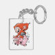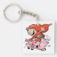 Funny Cartoon Gnome Riding Flying Pig Keychain