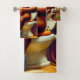 I ordered these towels because I am getting ready to stage my house for sale and wanted some really pretty towels to show off the bathroom. These are an absolutely perfect match for the teal walls and I could not be more pleased. Not only do they look beautiful, they also seem to be very good quality. They are different than any other towels I've had, as the surface fibers are not looped. I love that because I have never liked how most towels have loops that snag and pull no matter how careful you are. I pre-washed them and they came out beautifully. The towels are generously sized and they don't feel flimsy at all. I did not read the description well enough to understand I was paying as much as I was paying for just exactly what was pictured: not a set of two, but a single towel, hand towel and washcloth, so they are way more expensive than I thought (which was a lot, considering). However, I still love them enough that I went ahead and ordered a single additional bath towel so that I would have an actual set, but will need to buy a couple of solid color washcloths. Pricing is weird, because a single wash cloth is priced higher than a large bath towel?? Anyway, if you can afford them, these towels are fantastic. I would never pay this much except to show off a house for sale, but now that I've done it I will love them in my new home as well. Gorgeous! Vibrant Colors and exactly as pictured,..maybe evern better!